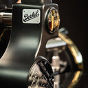 Design en Afwerking: De speciale carrosseriestructuur van aluminiumlegering is matzwart geverfd met een gietijzereffect en geaccentueerd met verchroomd staal en goudvergulde details.