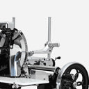 Verchroomde staalpers bestaande uit twee tegenovergestelde kolommen met wrijvingsknoppen, verbonden door een gekartelde arm.
