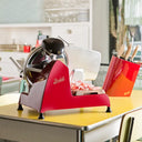Deze elektrische snijmachine is elegant en licht van gewicht. Het stalen mes zorgt voor dun en gelijkmatig snijden en vermindert tevens het afval. De ingebouwde slijper verhoogt de duurzaamheid en efficiëntie van de snijmachine. De Red Line 250 is eenvoudig in gebruik en heeft een modern, strak design. Het past perfect op je aanrecht om de mooiste charcuterieplanken te maken.