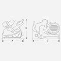 • Verhoogde dikte van de bodemplaat (totaalgewicht van de machine tussen 40 kg en 50 kg, afhankelijk van de versie) en roestvrijstalen voetjes met antisliprubber voor totale stabiliteit tijdens het snijden.