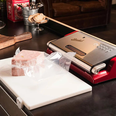 Dankzij de unieke en onmiskenbare stijl heeft Berkel een gewoon, huishoudelijk apparaat omgetoverd tot een innovatief product met een verfijn design. Met deze vacumeer/sealermachine kan je je voedsel langer vershouden, en zelfs nieuwe kooktechnieken uitproberen. Meer weten over vacumeren? Bekijk onze speciale pagina, waar we ook een mooie actie hebben!